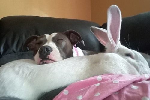 2026年第040幽默猜测(温暖午睡):午后阳光洒进屋内,小兔和小狗一起窝在柔软的沙发上。小狗轻轻打着呼噜,小兔靠在它身边安静入睡。它们彼此依偎,享受着宁静又温暖的时光。.....本期图片会给我们的带来什么样的玄机呢?